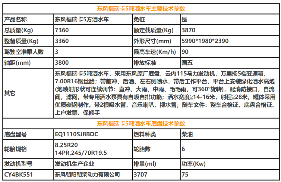 不上戶東風福瑞卡5噸灑水車