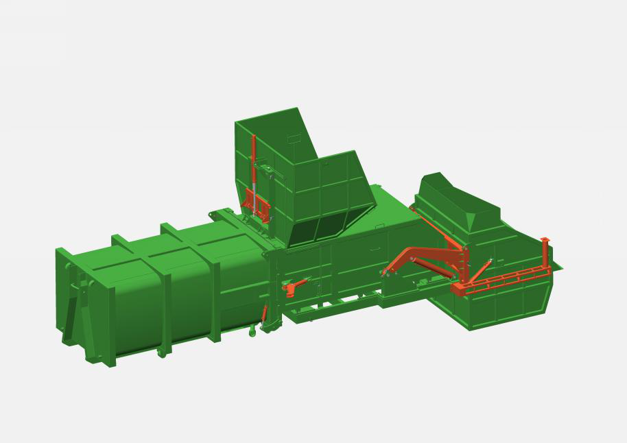 主機(jī)箱體包含:主機(jī)箱體、壓縮倉、壓頭、壓縮油缸、滑輪、液壓系統(tǒng)、電控系統(tǒng)等組成。其主要結(jié)構(gòu)件采用Q345高強(qiáng)度結(jié)構(gòu)鋼焊接成成,具有較有的耐磨性;主機(jī)箱體上的滑輪與滑臺(tái)導(dǎo)軌配合,使主機(jī)能相對(duì)滑臺(tái)滑動(dòng),液壓電控系統(tǒng)固定安裝于主機(jī)箱體上,整體簡(jiǎn)潔美觀。箱體容積15m3,匹配16噸后雙橋車廂可卸式垃圾車。